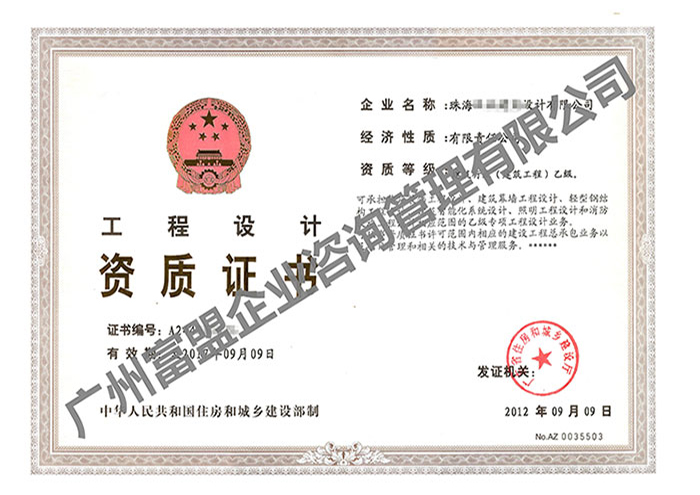 工程設(shè)計(jì)與施工資質(zhì)證書